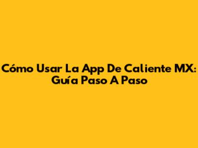 Cómo Usar La App De Caliente MX: Guía Paso A Paso
