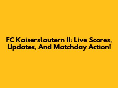 FC Kaiserslautern II: Live Scores, Updates, And Matchday Action!