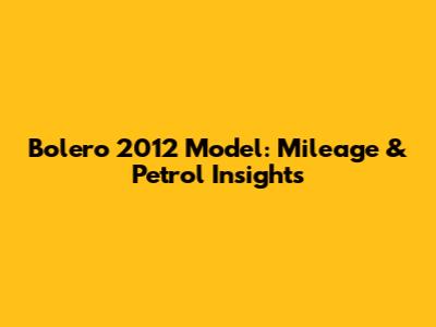 Bolero 2012 Model: Mileage & Petrol Insights