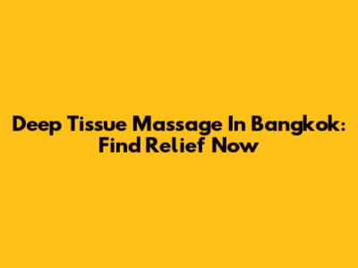 Deep Tissue Massage In Bangkok: Find Relief Now