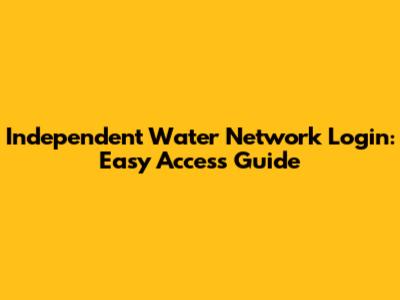 Independent Water Network Login: Easy Access Guide