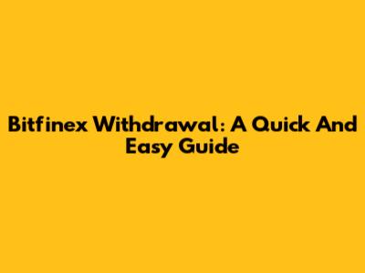 Bitfinex Withdrawal: A Quick And Easy Guide
