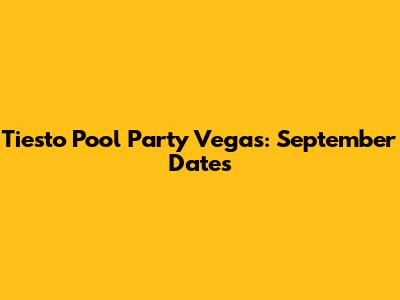 Tiesto Pool Party Vegas: September Dates