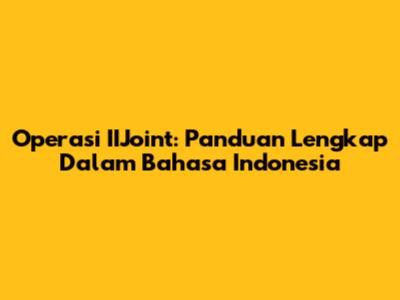 Operasi IIJoint: Panduan Lengkap Dalam Bahasa Indonesia