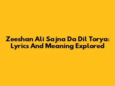 Zeeshan Ali Sajna Da Dil Torya: Lyrics And Meaning Explored