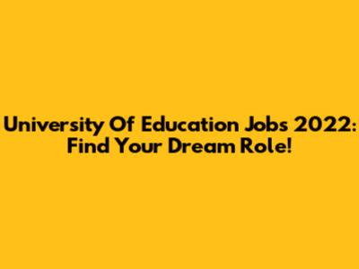 University Of Education Jobs 2022: Find Your Dream Role!