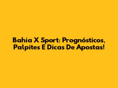 Bahia X Sport: Prognósticos, Palpites E Dicas De Apostas!