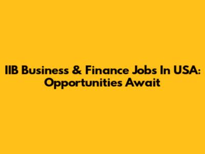 IIB Business & Finance Jobs In USA: Opportunities Await