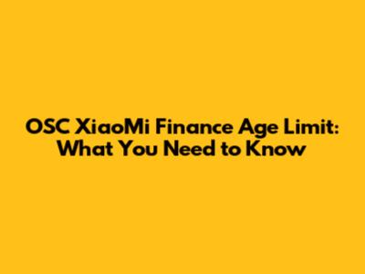 Demystifying OSC XiaoMi Finance and Its Age Requirements