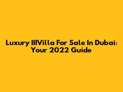 Luxury IIIVilla For Sale In Dubai: Your 2022 Guide
