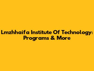 Lmzhhaifa Institute Of Technology: Programs & More
