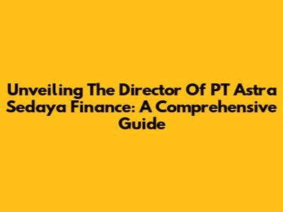 Unveiling The Director Of PT Astra Sedaya Finance: A Comprehensive Guide