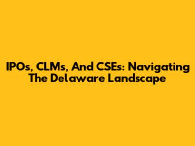 IPOs, CLMs, And CSEs: Navigating The Delaware Landscape
