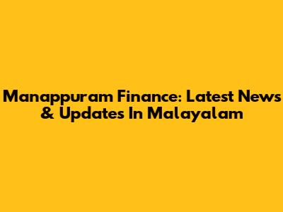 Manappuram Finance: Latest News & Updates In Malayalam