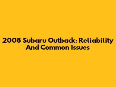 2008 Subaru Outback: Reliability And Common Issues