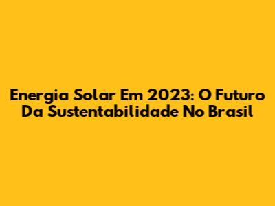 Energia Solar Em 2023: O Futuro Da Sustentabilidade No Brasil
