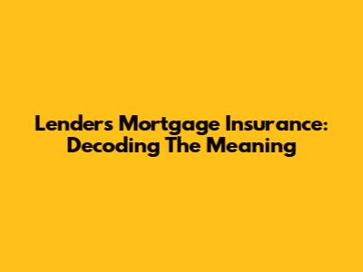 Lenders Mortgage Insurance: Decoding The Meaning