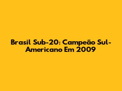 Brasil Sub-20: Campeão Sul-Americano Em 2009